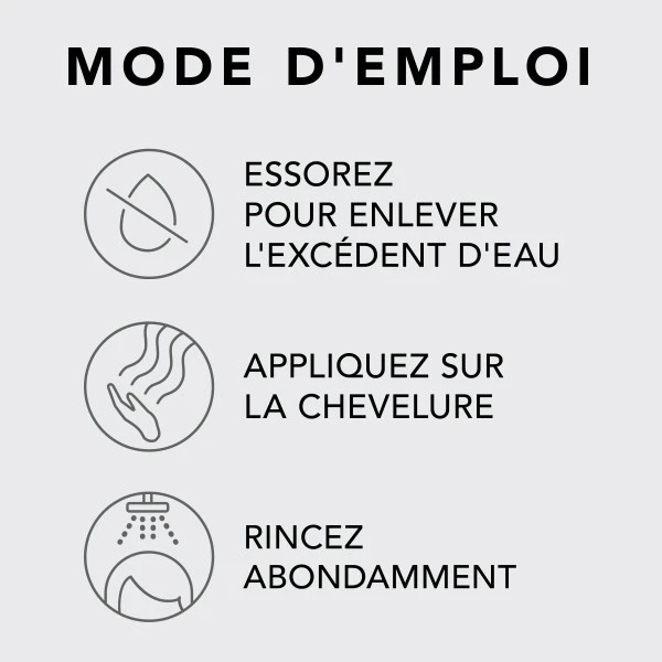 - Appliquer une petite quantité de conditionneur sur cheveux lavés.