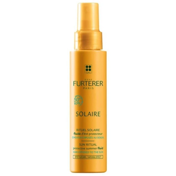 Fluide protecteur Solaire René Furterer pour protéger les cheveux exposés aux rayons du soleil, formulé sans silicone. Très haute protection UV : KPF 50+.