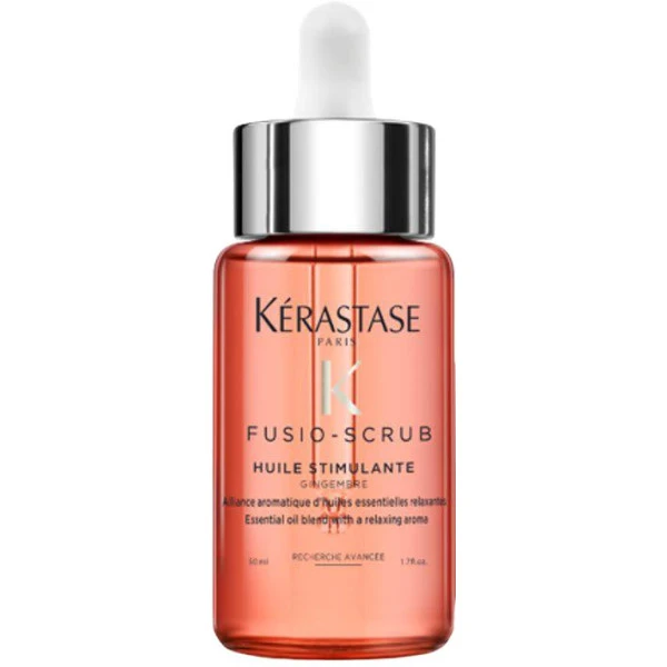Huile stimulante au gingembre Fusio-Scrub de Kérastase. Une alliance aromatique d’huiles essentielles stimulantes pour une sensation énergisante. Cette huile est enrichie en huile essentielle de gingembre, choisie pour une expérience sensorielle stimulante et dynamisante.