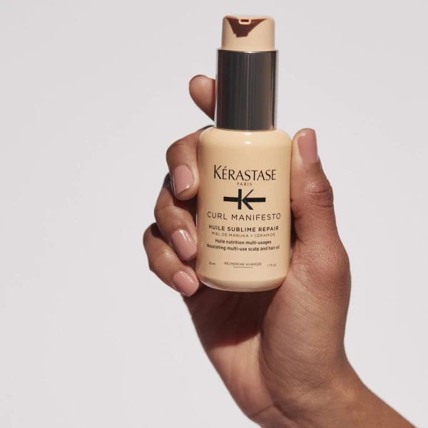 Découvrez l’huile sublime Curl Manifesto de Kérastase, une huile nutritive multi-usage pour prendre soin des cheveux et du cuir chevelu. Formulée à base de miel de Manuka et de Céramide, elle répond totalement aux besoins des cheveux frisés et crépus. En soin hydratant ou simplement en geste de finition, l’huile naturelle sublime repair Curl Manifesto s’adapte à votre routine capillaire pour des boucles parfaitement dessinées !
