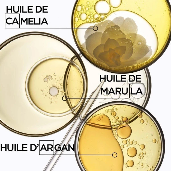 Le soin Ultime est formulé à base d’huile de germe de maïs qui provient d’Amérique Centrale, celle-ci apporte douceur et brillance à vos cheveux. Vous retrouverez également l’huile d’argan, venue du Maroc, est reconnue pour ses propriétés nutritives, elle va préserver les cheveux durablement et leur donne de la souplesse. Et enfin, l’huile précieuse de camélia, au parfum envoûtant, trouve son origine en Asie.