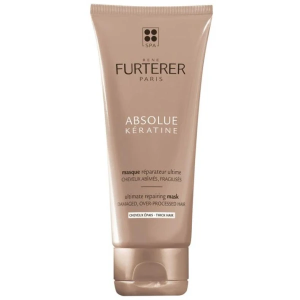 Masque Absolue Keratine René Furterer, idéal pour les cheveux épais sensibilisés par les services techniques. Formulé avec 82% d’ingrédients d’origine naturelle, il s’utilise en cure d’un mois 2 à 3 fois par semaine.