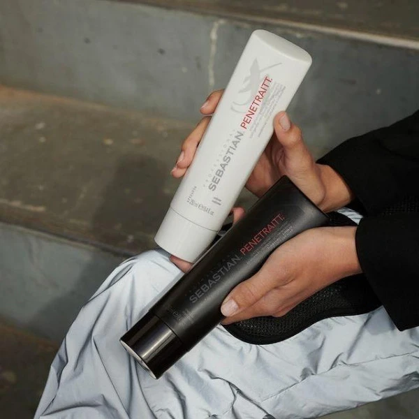 Utilisation : Élimine l’excès d’eau du cheveu. Appliquez le masque Sebastian Penetraitt de façon uniforme, en insistant sur les mèches les plus abîmées. Laissez agir deux à trois minutes. Rincez abondamment.